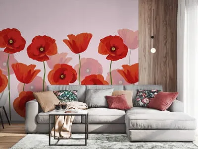 Fototapeta Czerwone maki na różowym tle ( 26925 )Cena zależy od wymiarów