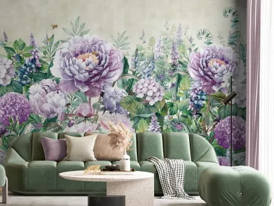 Fototapeta Liliowe piwonie na jasnozielonym tle ( 26906 )Cena zależy od wymiarów