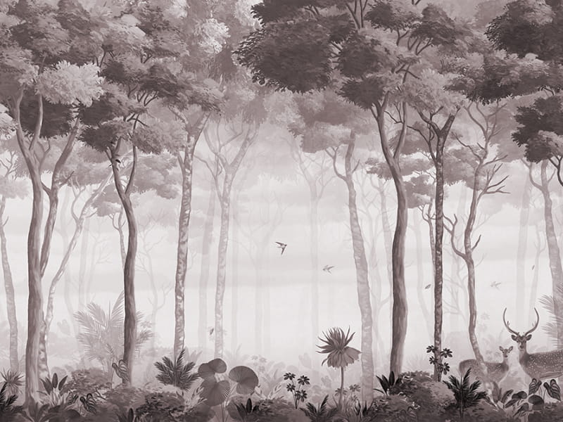 Ta grafika dla fototapety Mglisty krajobraz leśny jest dostępna w innych kolorach: